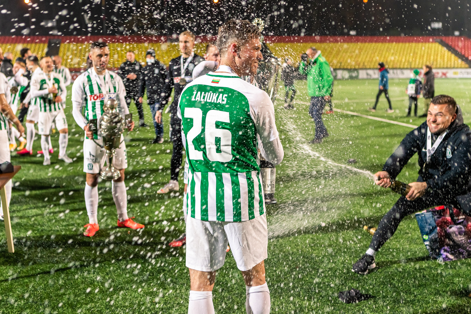 Kauno Vyčio žaidėjas J. Zagurskas švenčia įvartį taurės finalo metu