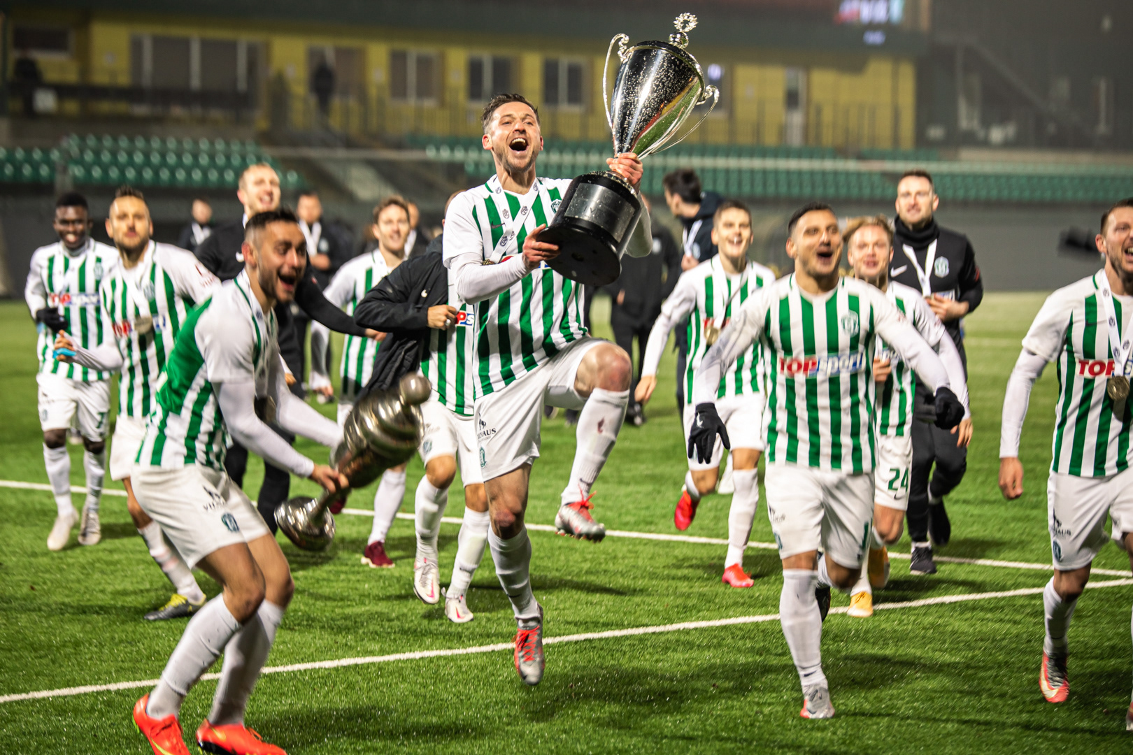 FC SLOVAN futbolininkai švenčia ketvirtą įvartį UEFA EUROPOS LYGOS atrankos rungtynėse prieš Vilniaus Riterius