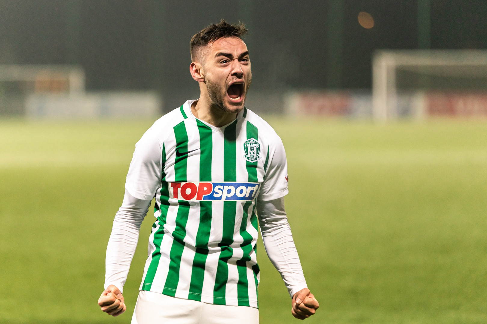 FC SLOVAN futbolininkas švenčia penktą įvartį UEFA EUROPOS LYGos atrankos rungtynėse prieš Vilniaus Riterius