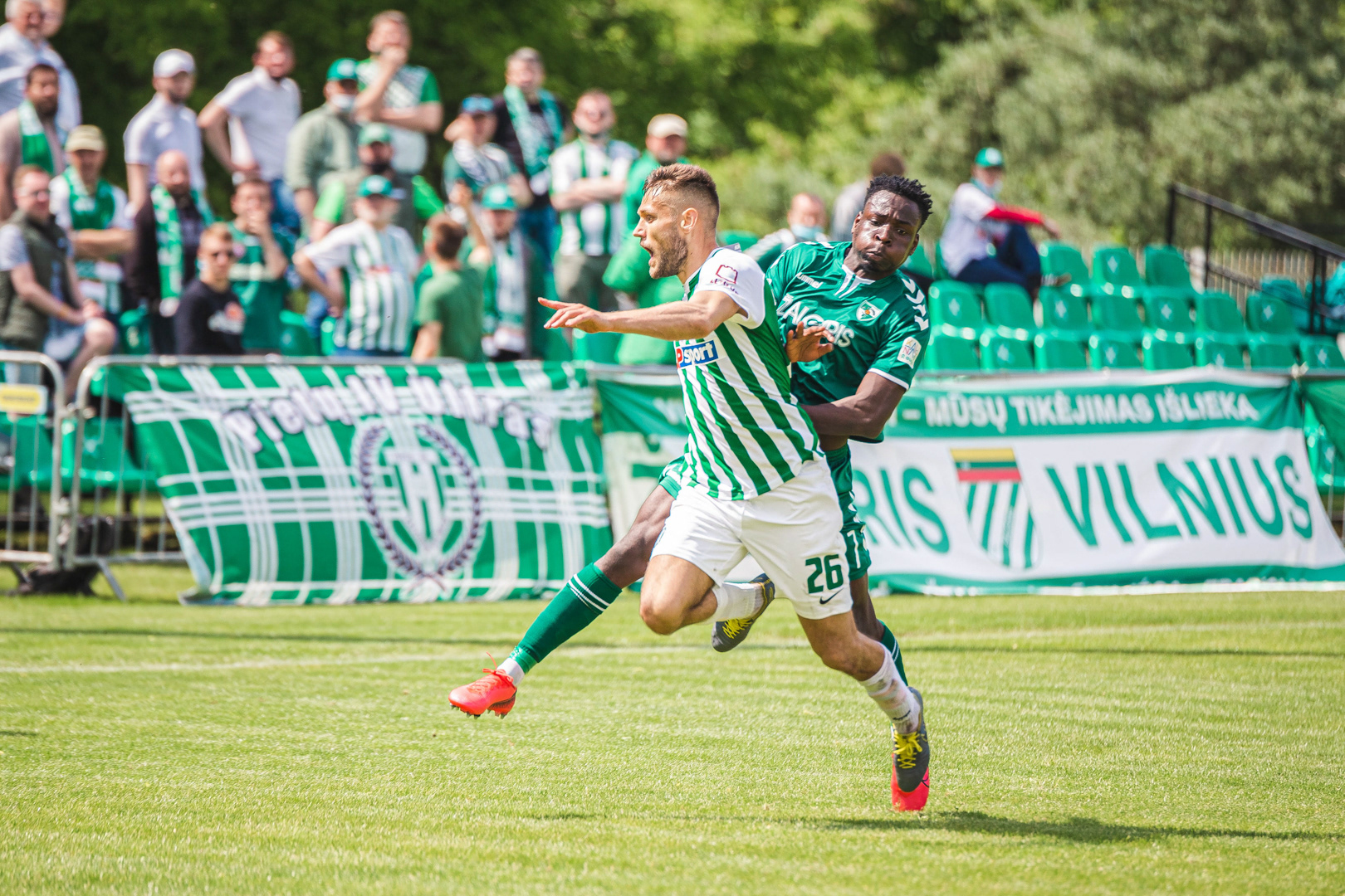 FC SLOVAN futbolininkas švenčia antrą įvartį UEFA EUROPOS Lygos atrankos rungtynėse prieš Vilniaus Riterius